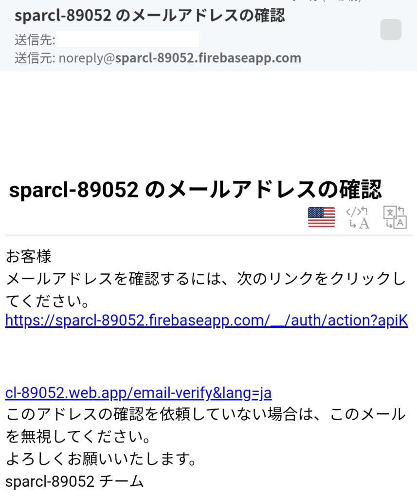 1.アプリでメールアドレスを新規登録すると以下の画像の内容のメールが登録したメールアドレス宛に届きます。メール本文のリンクをクリックして認証を行います。