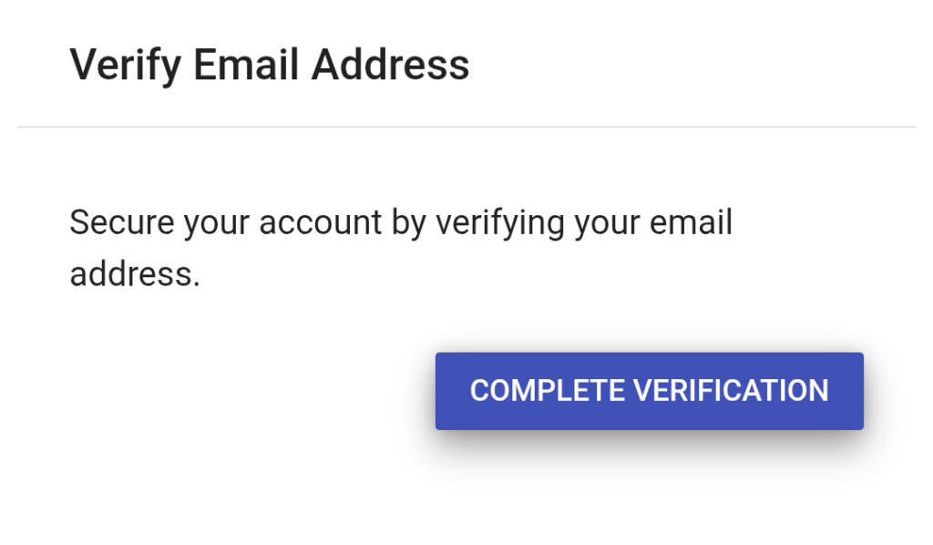サイト内のCOMPLETE VERIFICATIONをクリックするとメールアドレスが認証されます。